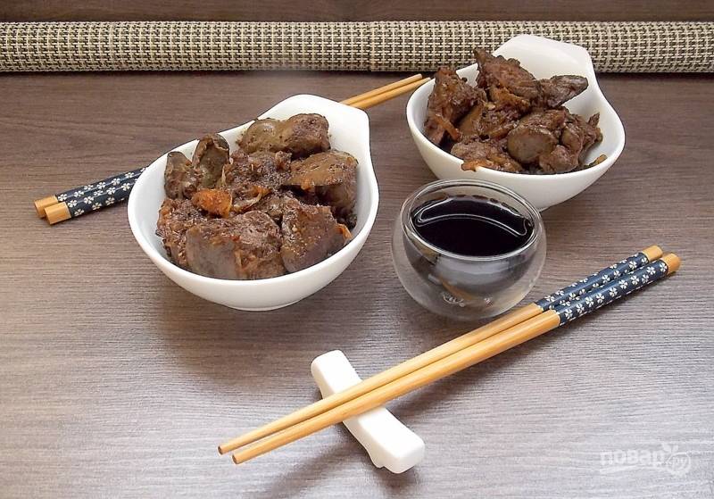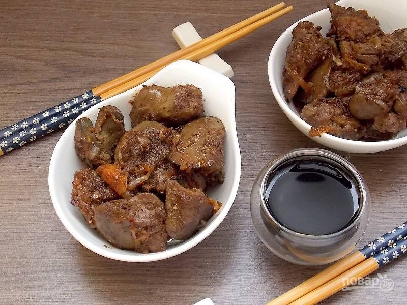 Мягкая, с насыщенным ароматом куриная печень придется по вкусу любителям азиатской кухни. Готовится очень быстро и станет настоящей палочкой-выручалочкой для занятых хозяек.