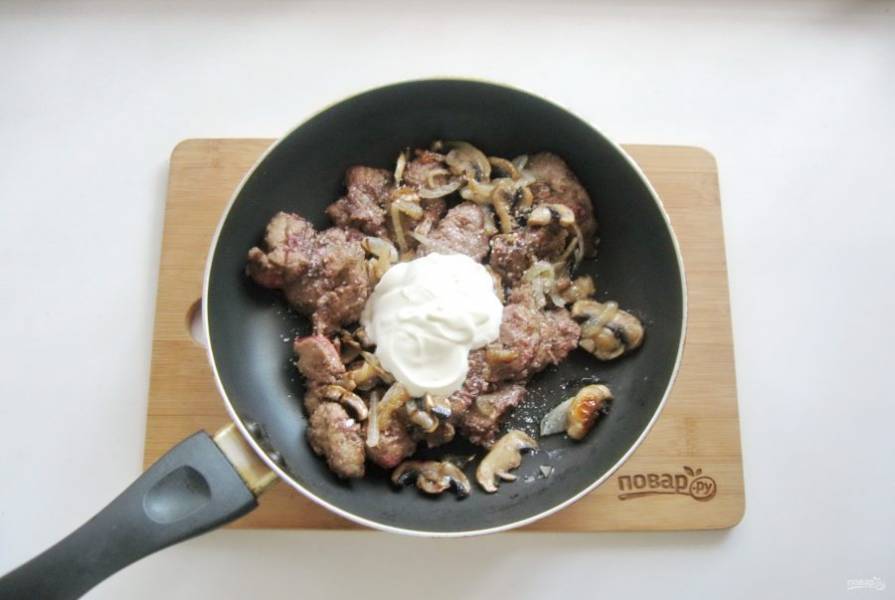 Быстро обжарьте печенку с обеих сторон так, чтобы внутри она оставалась сырой, а "схватилась" только сверху.