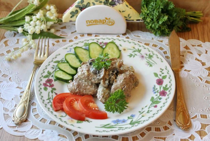 Куриная печень в йогурте готова. Подавайте к столу с овощами, картофельным пюре, рисом, кашей, макаронами.