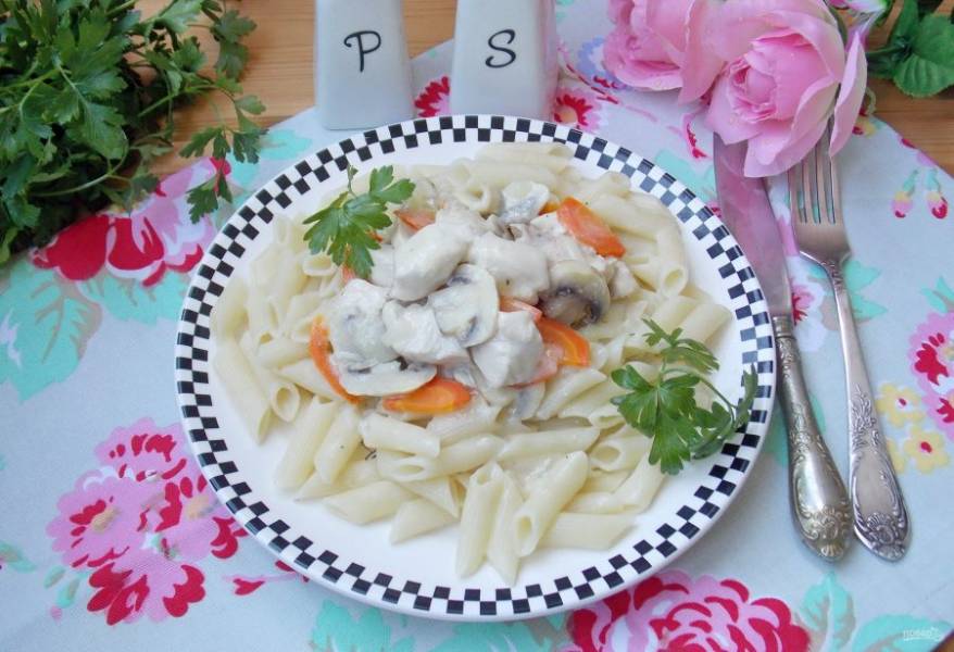 Куриное филе с шампиньонами в сметане - простое, но необыкновенно вкусное блюдо. Готовится в считанные минуты! Нежное мясо в отличном соусе с кремовой консистенцией.