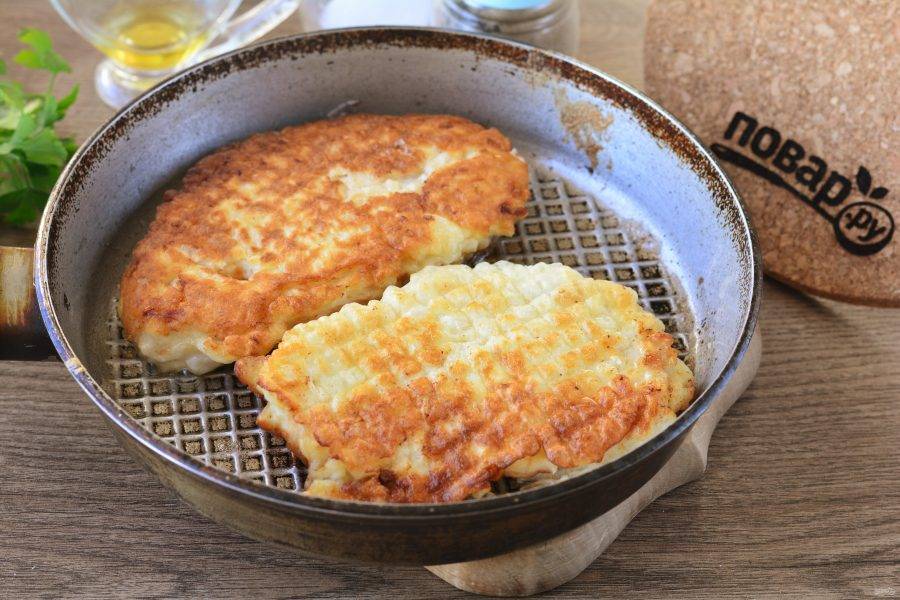 Обжаривайте отбивные с двух сторон по 5-6 минут, пока не подрумянятся.