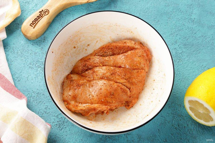 Хорошо натрите со всех сторон, чтобы специи равномерно распределились и оставьте на 15 минут.