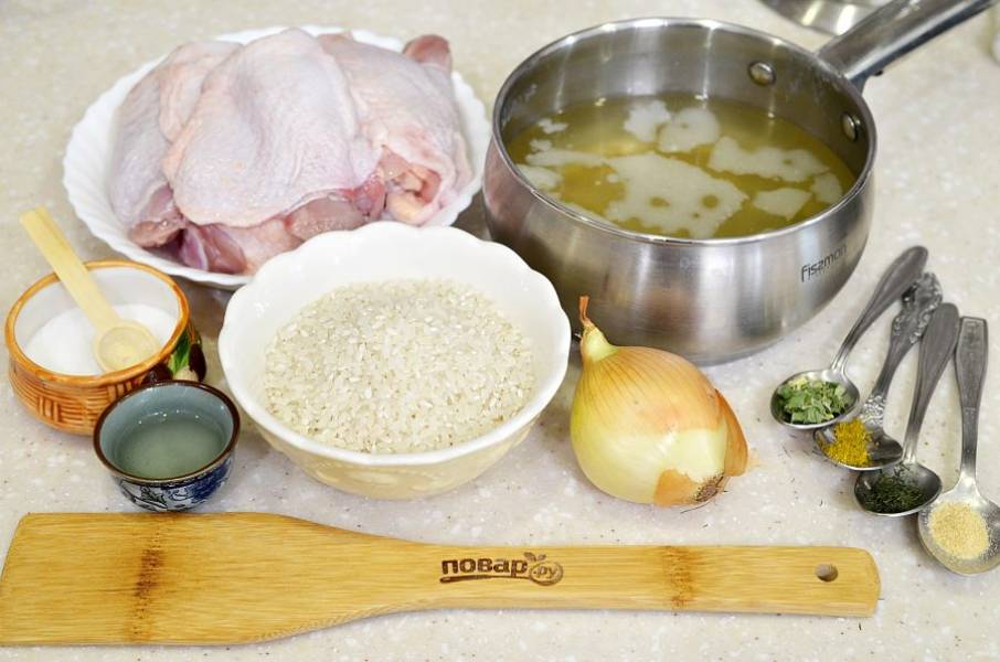 Рецепт приготовления замечательного горячего блюда из курицы и риса.