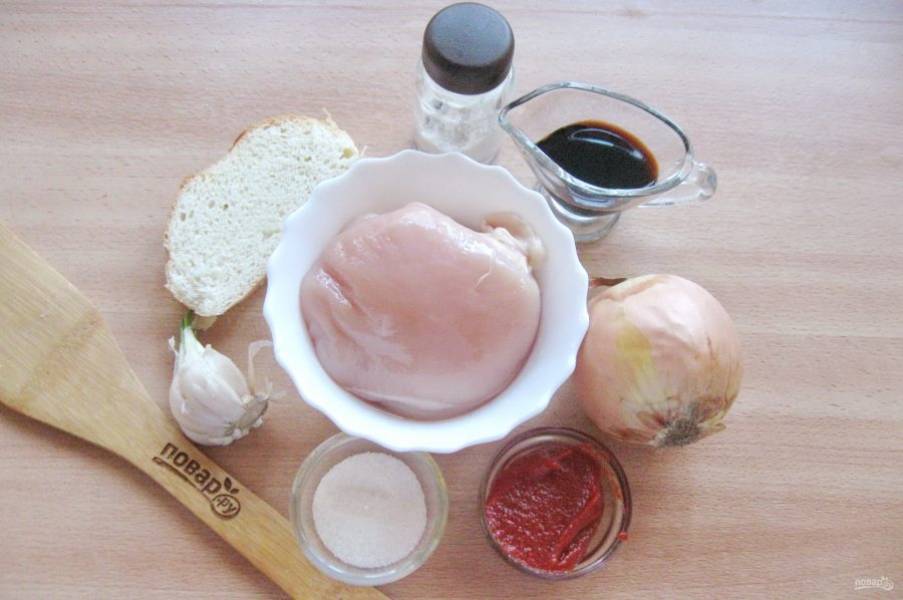 Подготовьте ингредиенты для приготовления куриных боллов в кисло-сладком соусе.