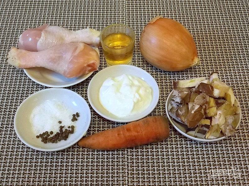 Куриные голени в луково-грибном соусе