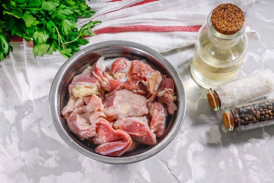 Желудки тщательно промойте в воде, вычистите их с обеих сторон от грязи.