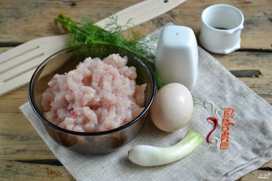 Подготовьте необходимые ингредиенты. Куриную грудку промойте под проточной водой, обсушите бумажными полотенцами и пропустите через мясорубку со средней решёткой.