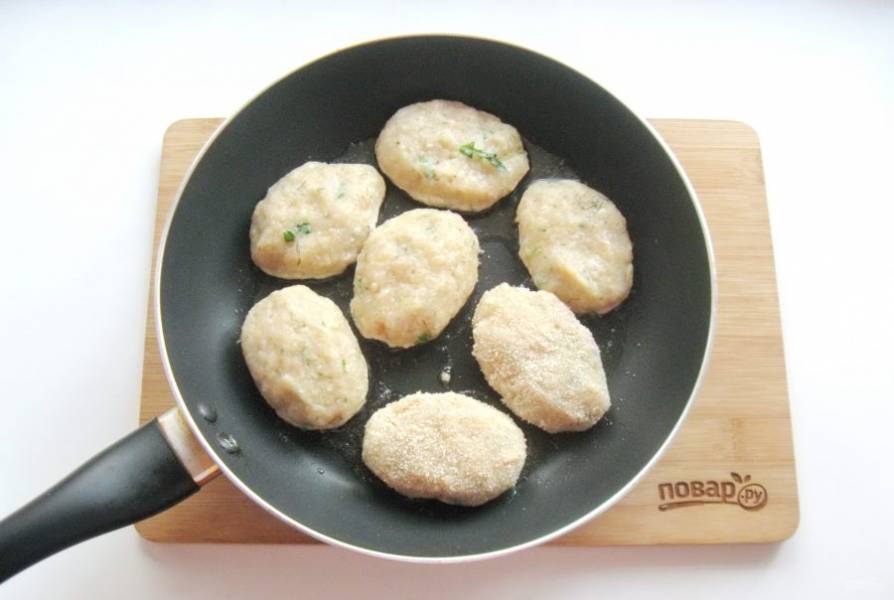 Обжарьте котлеты с обеих сторон до румяной корочки.