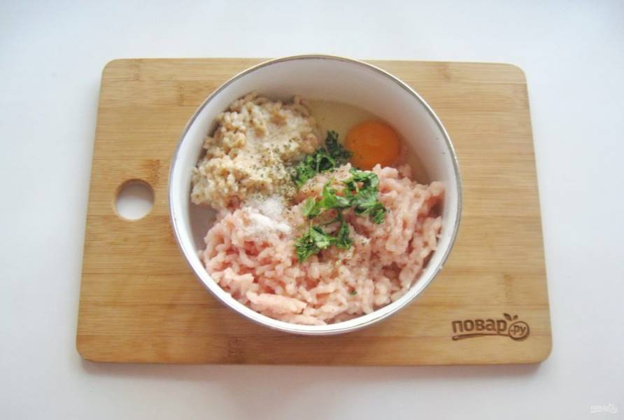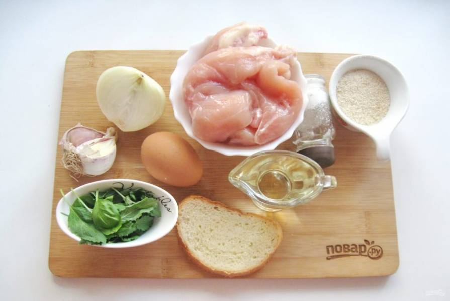 Подготовьте ингредиенты для приготовления котлет с базиликом.