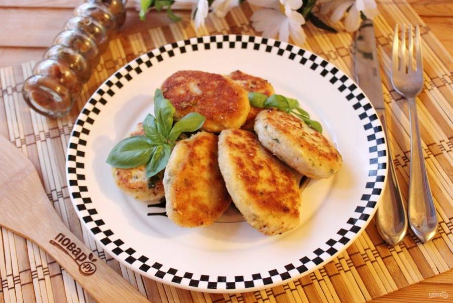 Куриные котлеты с базиликом готовы. Подавайте к столу с любым гарниром.