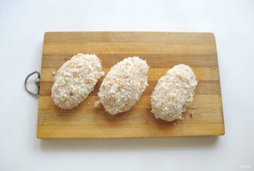 Сформируйте котлеты. Обваляйте их в панировочных сухарях или хлебных крошках.