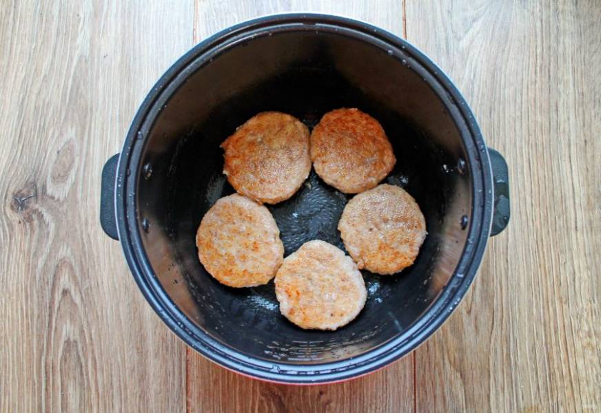 Обжаривайте котлетки по 10-15 минут, под крышкой, с двух сторон.
