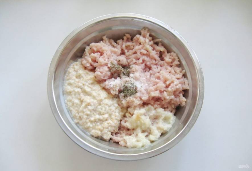 Куриное филе помойте. Белый хлеб, булку или батон залейте холодной водой или молоком. Через 5-7 минут отожмите. Лук и чеснок очистите, помойте. Пропустите через мясорубку филе, лук, чеснок и белый хлеб.