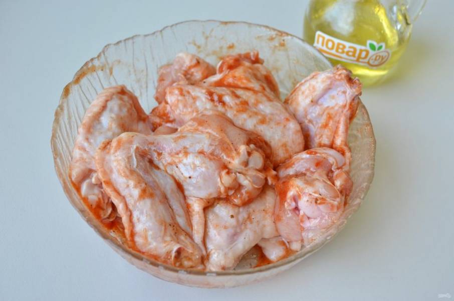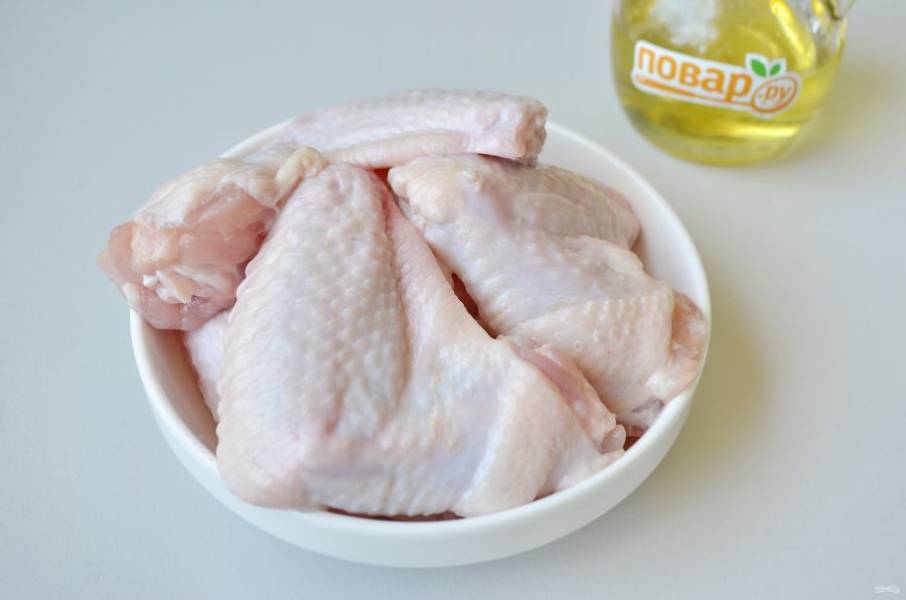 1. Куриные крылышки вымойте, обсушите бумажным полотенцем.