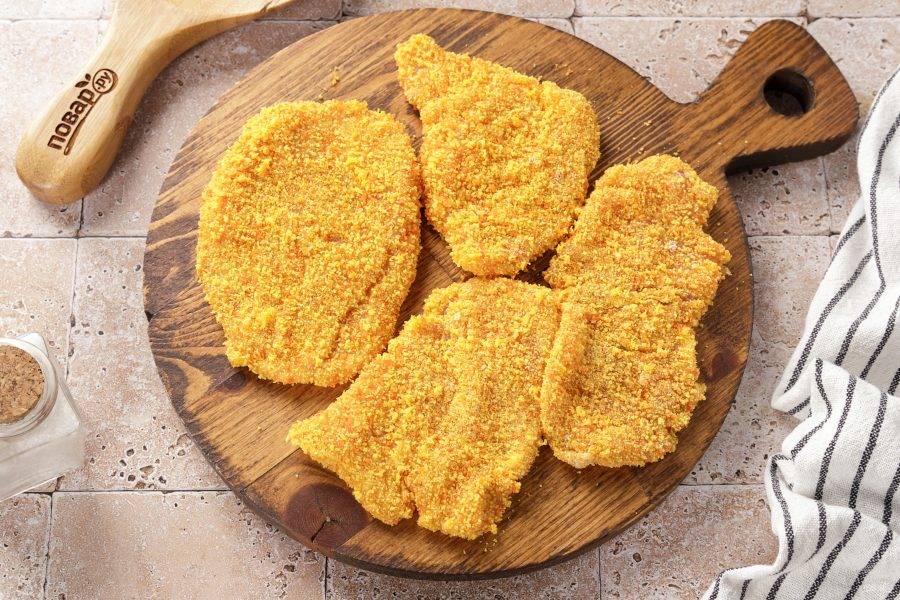 В конце запанируйте в сухарях.