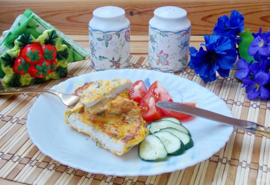 Филе куриной грудки помойте и нарежьте пластинами толщиной 5-7 мм. Немного отбейте.
