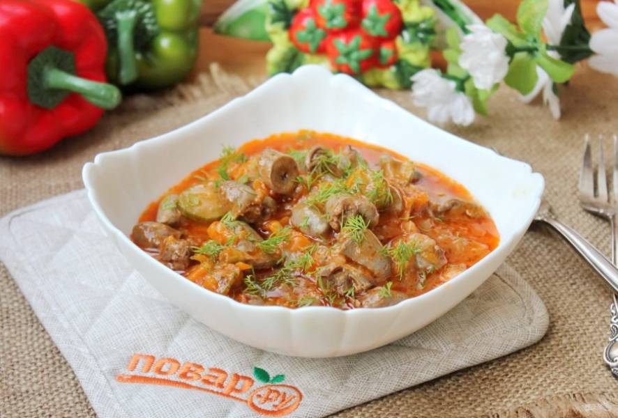Любителям субпродуктов хочу предложить простой рецепт приготовления куриных сердечек с солеными огурцами в томатном соусе. Блюдо очень вкусное, особенно с картофельным пюре, макаронами или кашей.