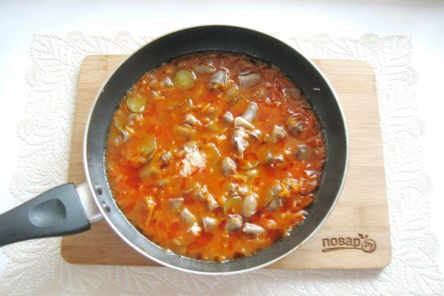 Куриные сердечки с солеными огурцами