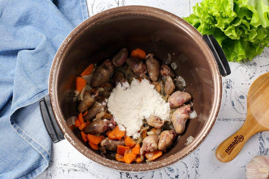 Добавьте к овощам сердечки и обжарьте под крышкой в течении 10-15 минут.