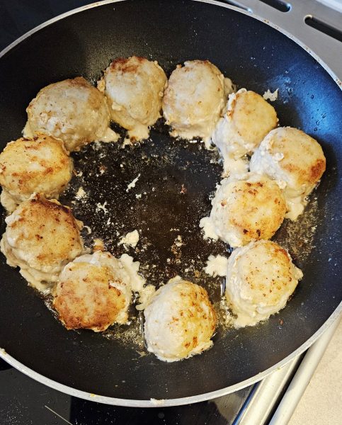 Сформируйте из фарша тефтели и слегка обжарьте их на растительном масле со всех сторон.