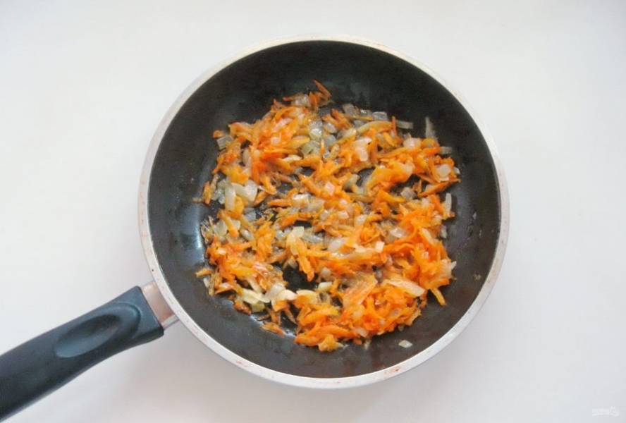 Жарьте морковь с луком 8-10 минут на небольшом огне, помешивая.