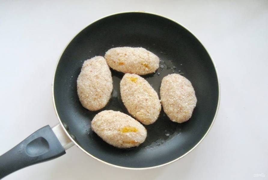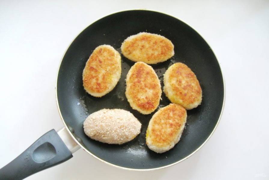 Сформируйте зразы. Обваляйте в панировочных сухарях.