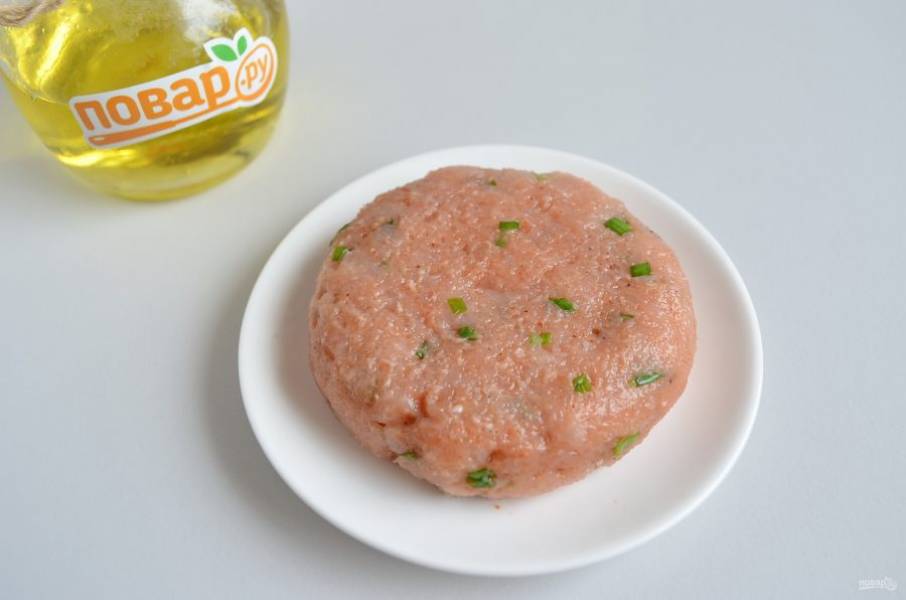 4. Сформируйте большую круглую котлету. Обжарьте ее на растительном масле до готовности, жарить нужно с двух сторон по 3-4 минуты.