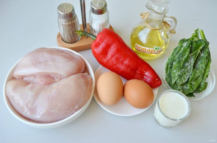 1. Подготовьте продукты, вымойте филе. Шпинат подойдет свежий или замороженный. Приступим!