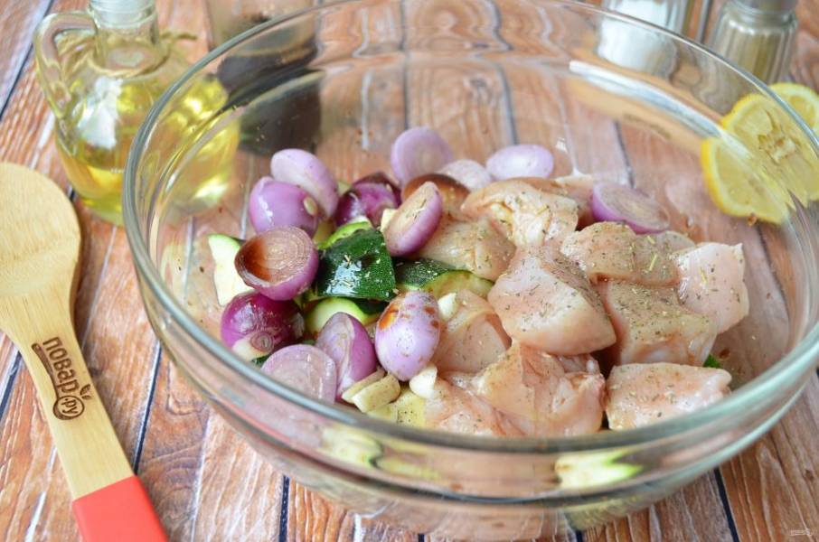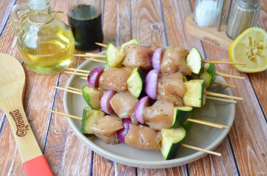 Куриный шашлык с луком и цуккини