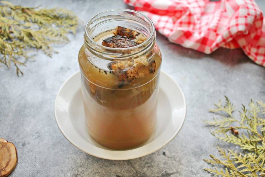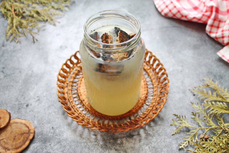 Закройте банку марлей и уберите в теплое место на 24 часа. После этого процедите квас, если нужно добавьте сахар и подавайте.