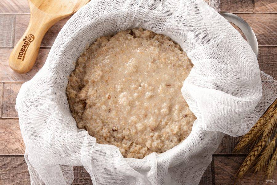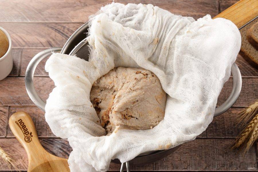 Квас я процеживаю через два куска марли, а гущу оставляю для следующей партии.