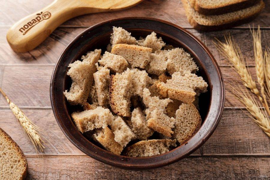 Подготовьте все ингредиенты. Хлеб можно использовать любой, ржаной или пшеничный, или смесь. Главное, чтобы настоящий. Сушить его не надо.