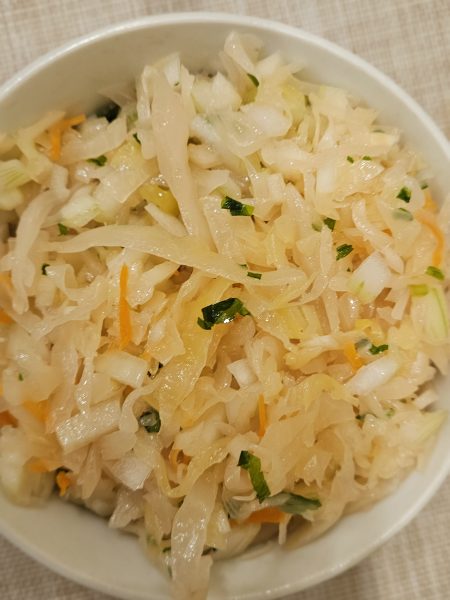 Через трое суток закройте банку крышкой и уберите на хранение в холодильник. Квашеная капуста готова. Приятного аппетита!