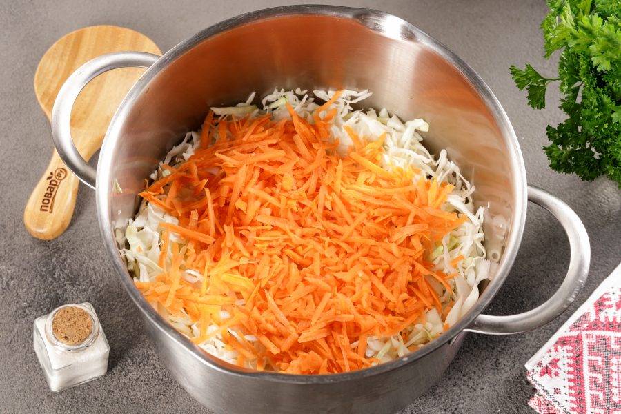 Морковь очистите, нарежьте тонкой соломкой или натрите на крупной терке.