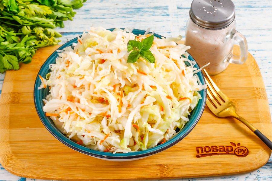 Подайте квашеную капусту к столу украсив свежей зеленью.