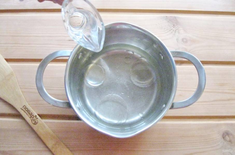 Поставьте кастрюлю на плиту и доведите до кипения воду с солью и сахаром, чтобы они растворились. Затем влейте растительное масло.