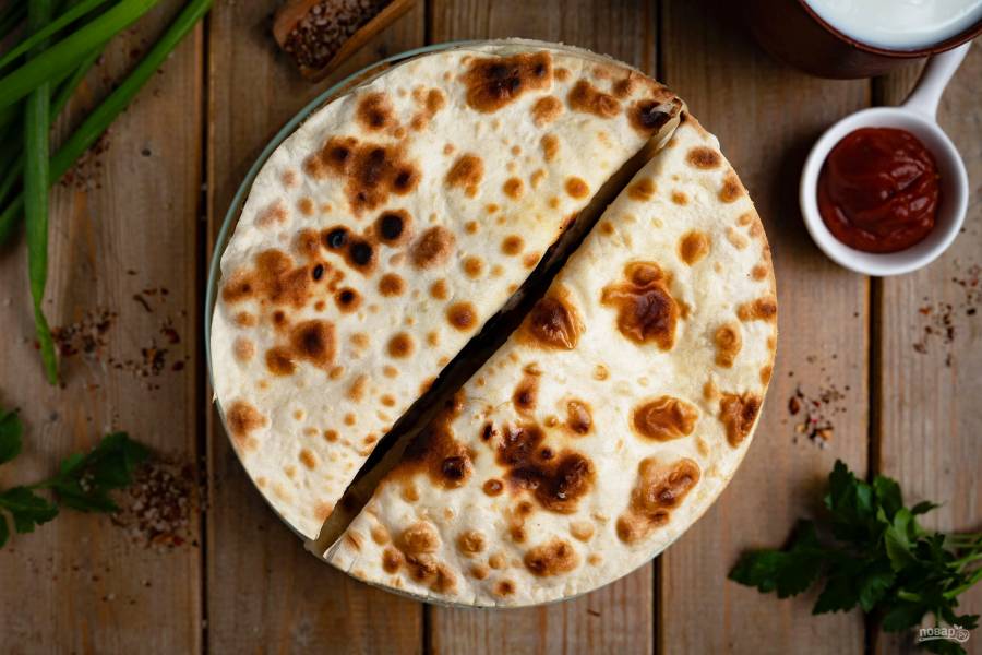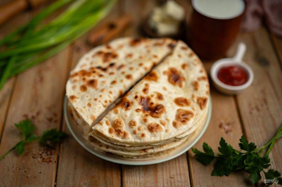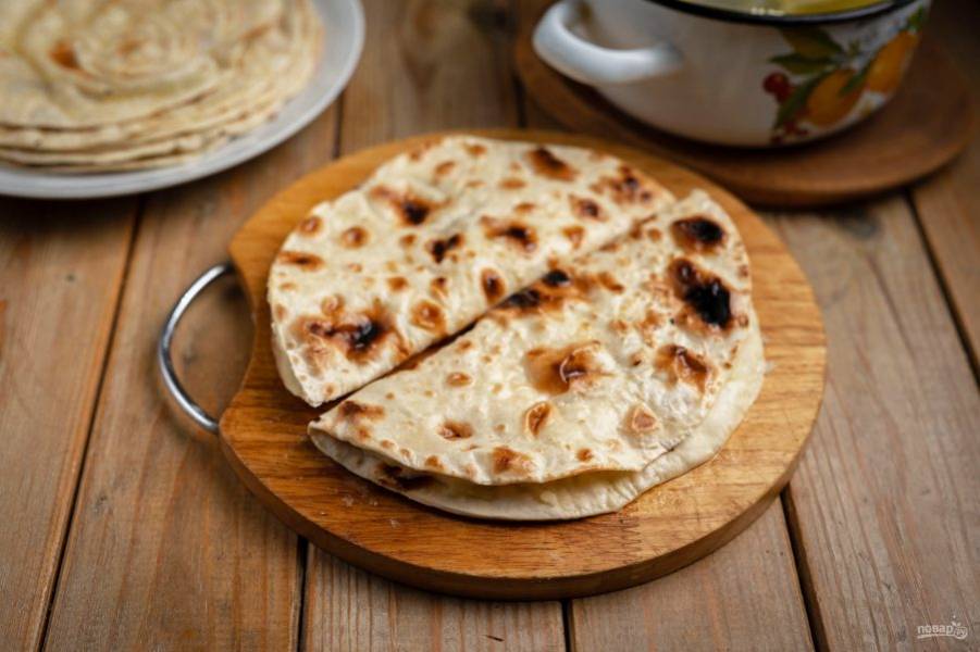 Обжаривайте лепешку с двух сторон до темных подпалин.