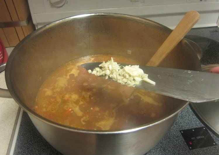 7. Аккуратно удалить лавровый лист и добавить мелко нарезанный чеснок.