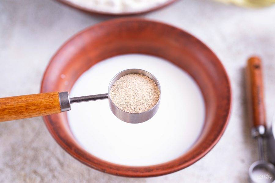 Добавьте дрожжи. Перемешайте. Добавьте еще 2-3 ст.л. муки и опять перемешайте. Оставьте эту дрожжевую смесь на 20 минут в покое, чтобы она подошла.