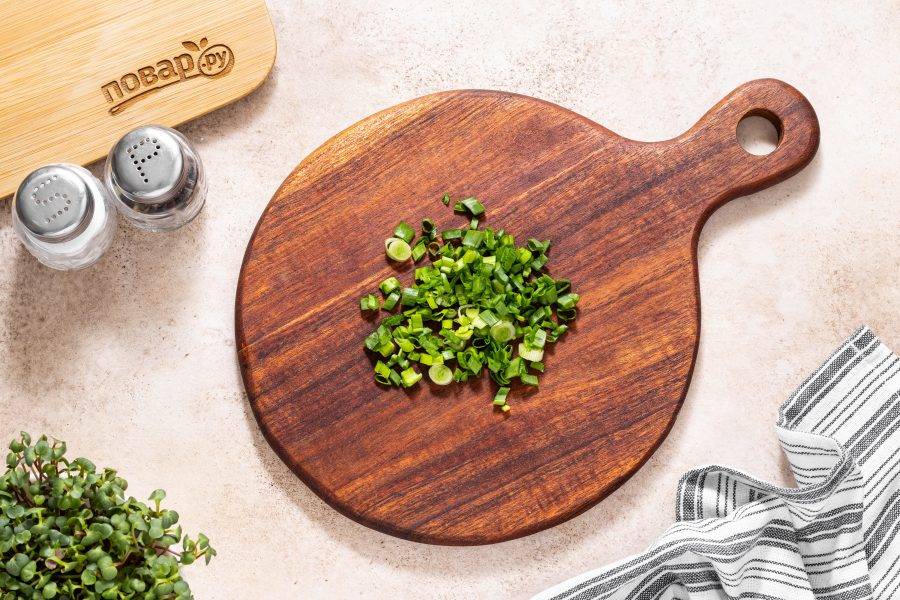 Для подачи мелко нарежьте зеленый лук.