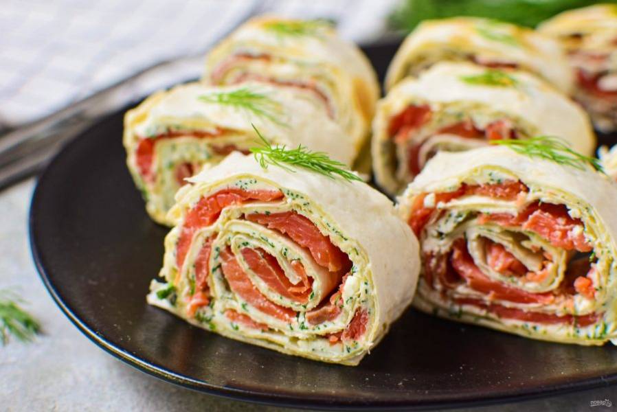 Быстрая и простая закуска из лаваша — рулет с рыбой и сыром. Начинка из красной рыбы всегда смотрится очень выигрышно на любом застолье. Дополните начинку любимыми специями.