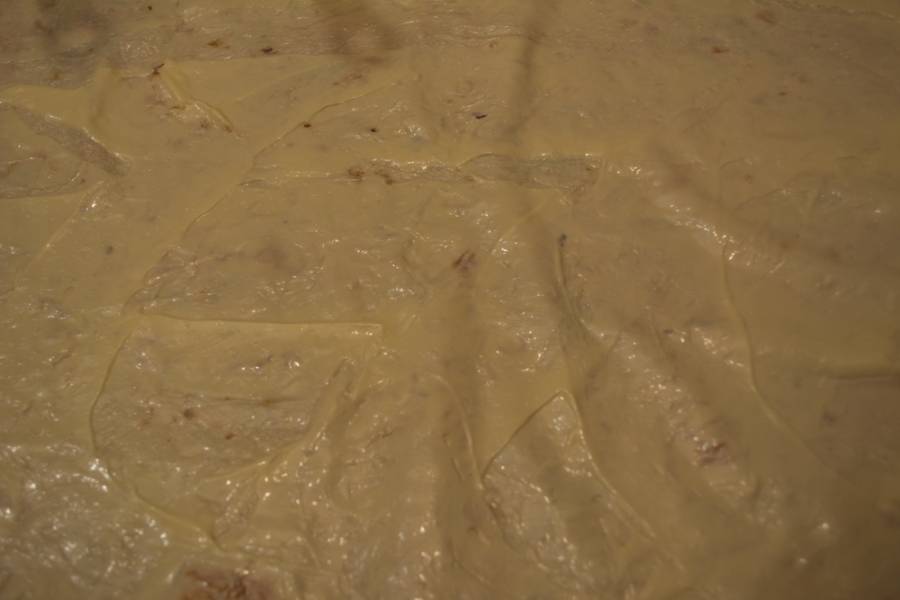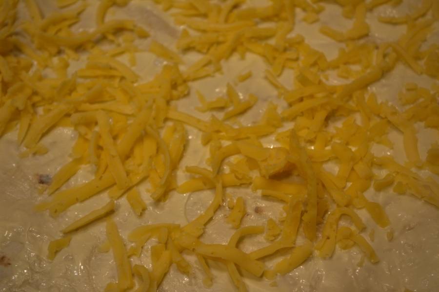 Натрите на терке твердый сыр. Выложите его по всему лавашу.