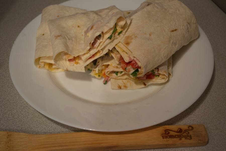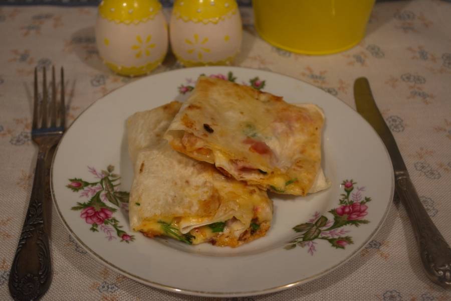 Треугольники из лаваша с начинкой из сыра и колбасы