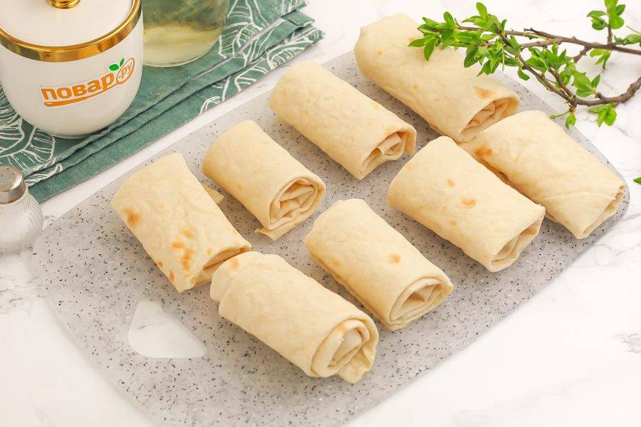 Лаваш нарежьте длинными лентами шириной 8-10 см.