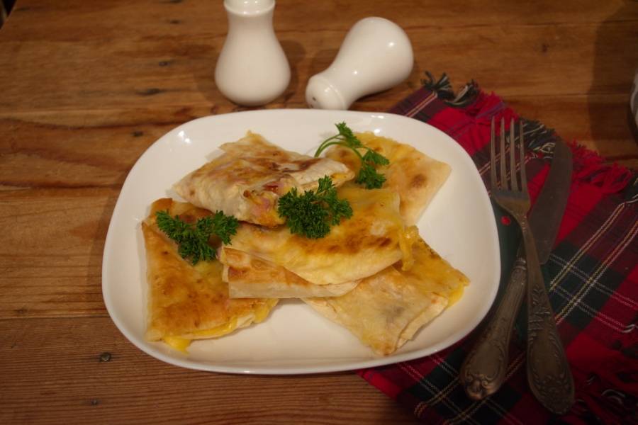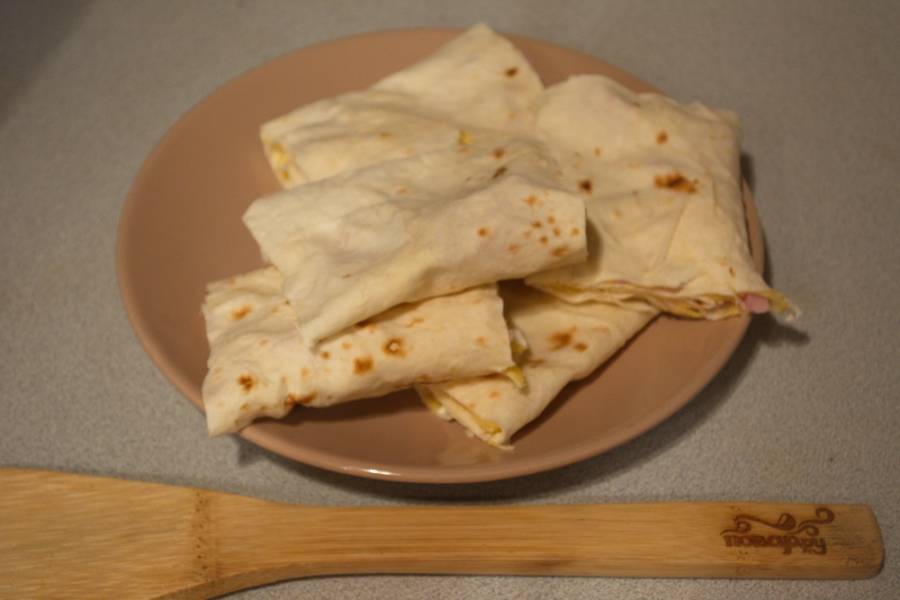 Треугольники из лаваша с начинкой из сыра и колбасы