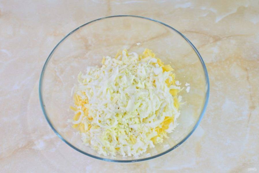 В чашу потрите на терке сыр.
