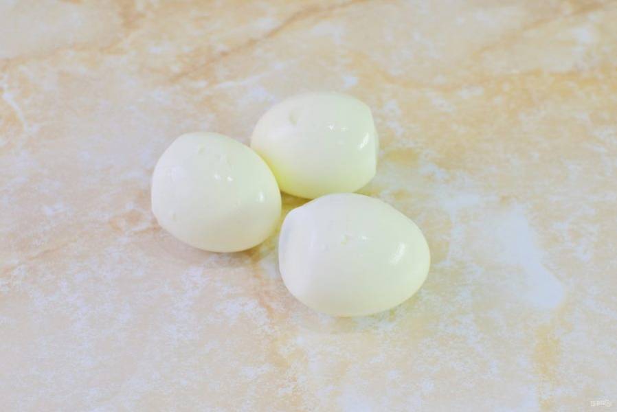 Отварные яйца очистите от скорлупы.