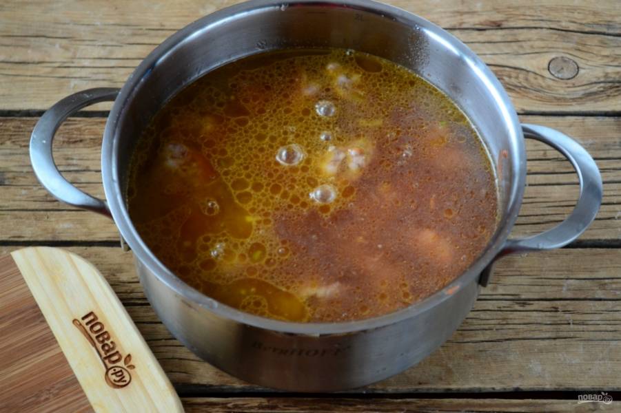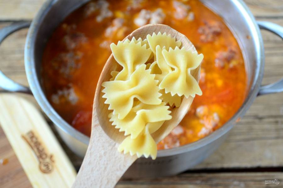 Добавьте пасту. Я советую использовать пасту из твердых сортов пшеницы. Варите суп еще 10 минут.