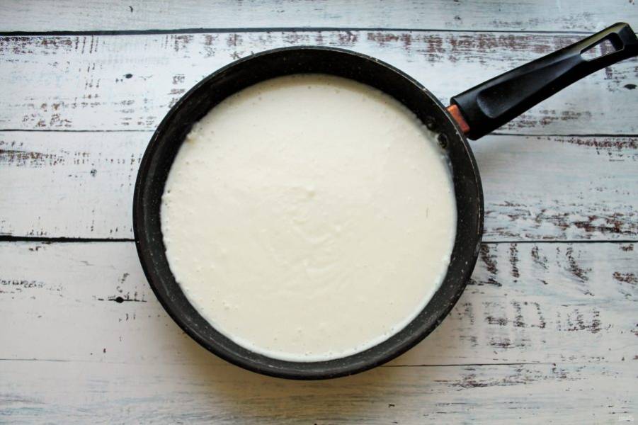 Интенсивно мешая венчиком, влейте молоко. Перемешайте массу до однородности без комочков.