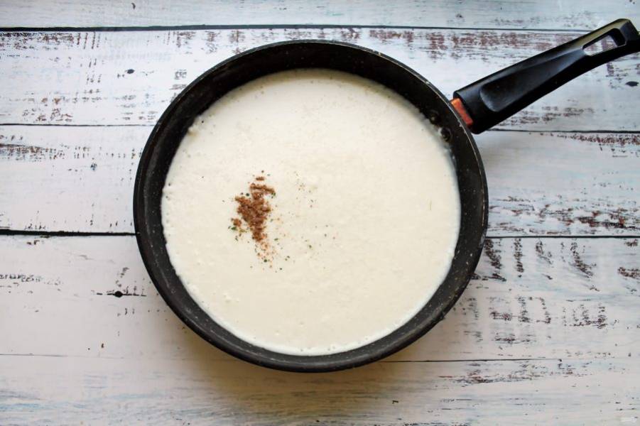 Добавьте в соус мускатный орех, соль и варите на среднем огне, мешая, до загустения.